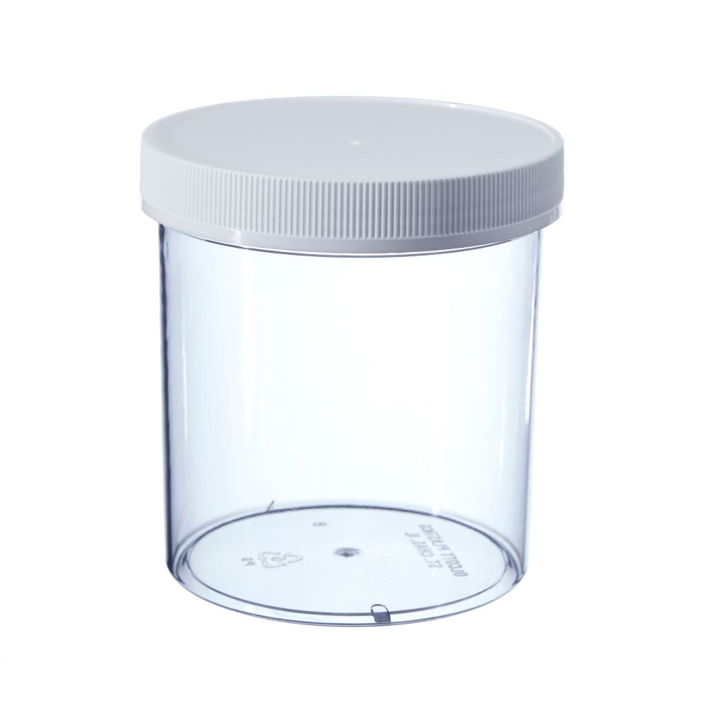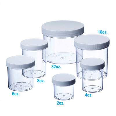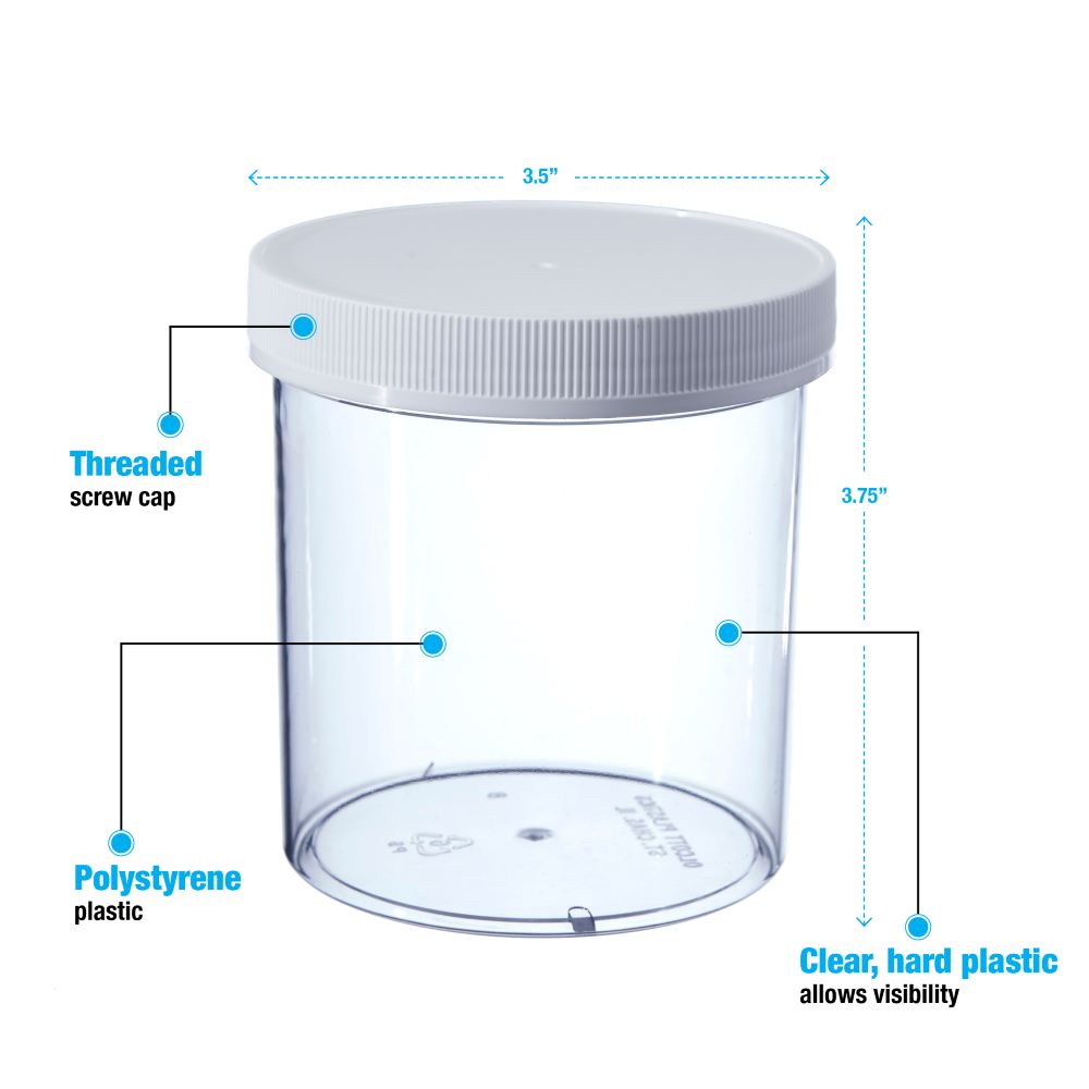 These clear plastic wide-mouth jars are lightweight, and easy to fill. These screw top jars are available in clear polystyrene. FDA accepted. Plastic Screw-On caps included.