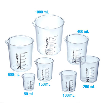 These Nalgene™ Griffin Low Form PMP beakers are shatterproof, durable, and can be autoclaved repeatedly. They feature a "no drip" pour spout and are non-toxic, non-contaminating and biologically inert. Transparent Nalgene™ beakers feature an approximate volume scale and have excellent chemical resistance, and heat tolerance. Beakers can be used continuously at 150°C with intermittent service to 175°C. POLYMETHYLPENTENE.